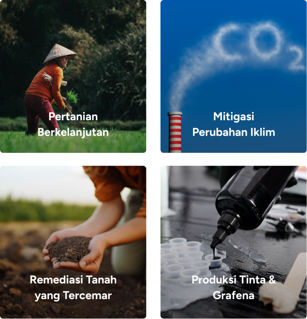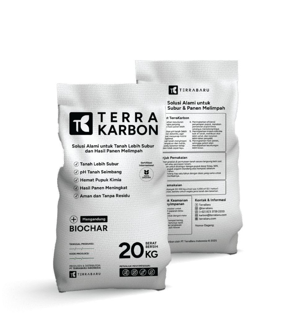 TerraKarbon adalah material kaya karbon yang stabil dengan beragam manfaat untuk mendukung pertanian berkelanjutan. Komponen utamanya, Biochar, diproduksi sesuai standar internasional melalui proses pirolisis limbah organik.